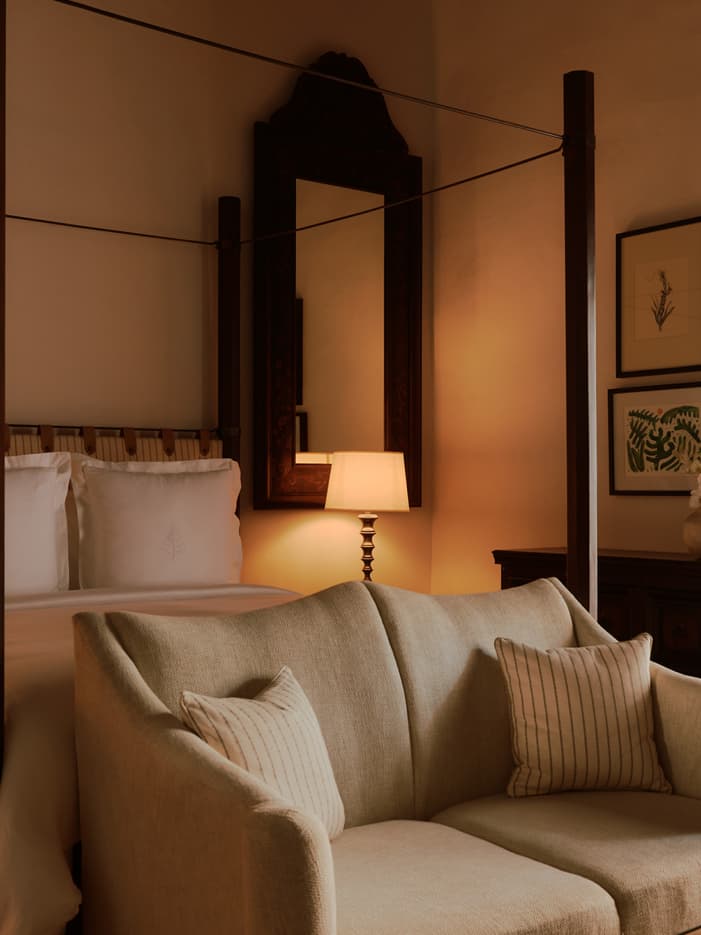 With stylish Colonial décor accented by rich dark wood details, this high-ceilinged guest room is windowless, offering extra quiet and total light control – ideal for sleeping late after an exciting night in Cartagena. Enjoy a truly tranquil retreat highlighting serenity and restfulness.