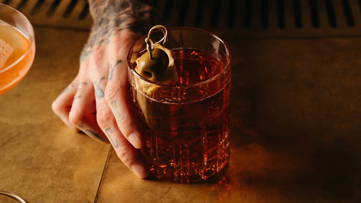 SMOKE SCREENBulleit Bourbon, Glenmorangie 10, Maple Syrup–Infused Lapsang Souchong Tea, Angostura