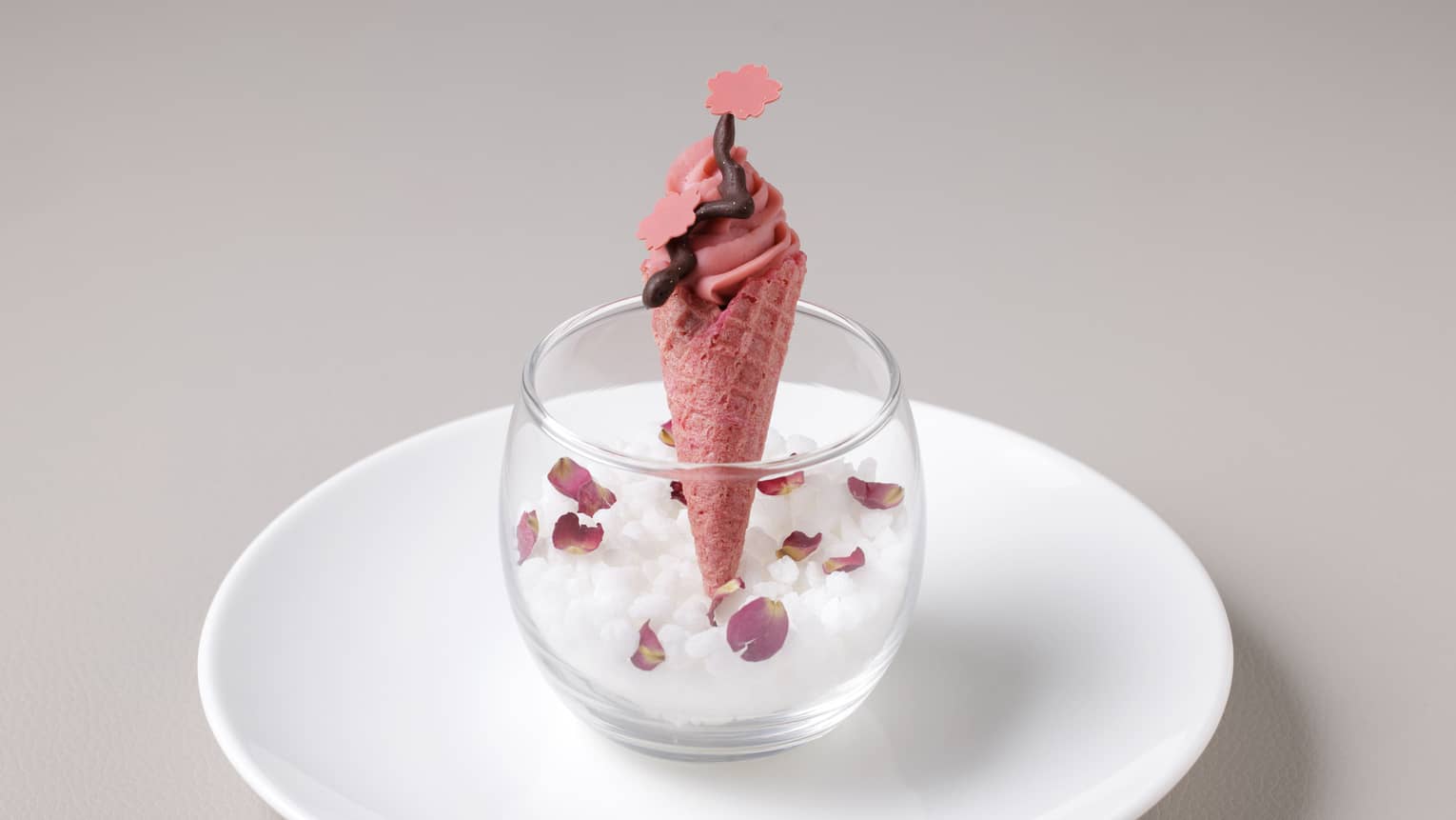 Ruby Chocolate ConeA beautifully pink ruby chocolate cone is paired with fragrant rose ganache and subtly sweet azuki red bean. Its crisp texture and the distinctive fruity acidity of ruby chocolate create a refined and sophisticated accent.