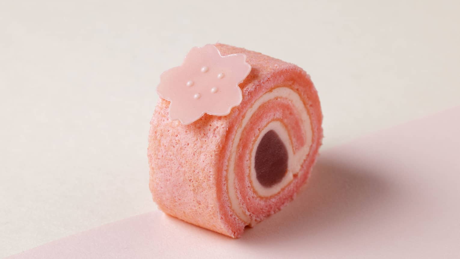 Sakura Roll CakeA light sponge delicately infused with the gentle aroma of sakura is layered with refined sweet white bean paste and sakura-flavoured white chocolate cream, then carefully rolled to perfection. Finished with a sakura-shaped chocolate accent, this elegant creation beautifully reflects the harmony of Japanese and Western flavours.