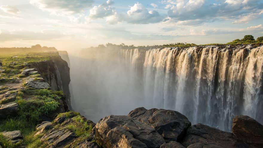 A UNESCO World Heritage site that is known to locals as “the smoke that thunders,” Victoria Falls is considered the largest waterfall in the world because of its combined height and width.
