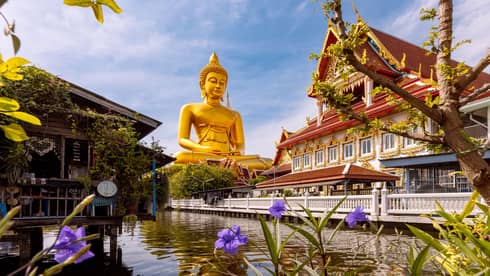 See the colossal golden statue of the reclining Buddha at Wat Pho and admire the gilded buildings of the Grand Palace, where monks chant in worship, before returning to the hotel on a private boat.
