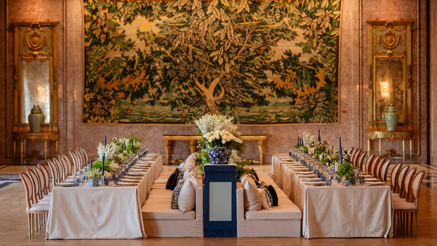 A SUA GALA NO FOUR SEASONSLeve os seus convidados ao magnífico Salão Pedro Leitão. Ideal para ocasiões formais, esta espantosa sala ao nível do átrio tem acesso a partir da Galeria Mezzanine ou da entrada privada pela Rua Castilho. Grandes candelabros, Tapeçarias de Portalegre e um impressionante mural dourado assinado pelo artista Pedro Leitão, destacam a intemporal escadaria em espiral, evocando os pontos altos da história de Lisboa.