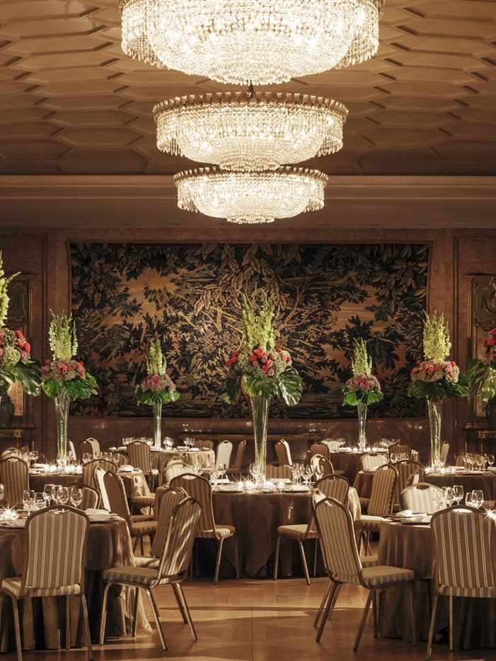 A SUA GALA NO FOUR SEASONSLeve os seus convidados ao magnífico Salão Pedro Leitão. Ideal para ocasiões formais, esta espantosa sala ao nível do átrio tem acesso a partir da Galeria Mezzanine ou da entrada privada pela Rua Castilho. Grandes candelabros, Tapeçarias de Portalegre e um impressionante mural dourado assinado pelo artista Pedro Leitão, destacam a intemporal escadaria em espiral, evocando os pontos altos da história de Lisboa.