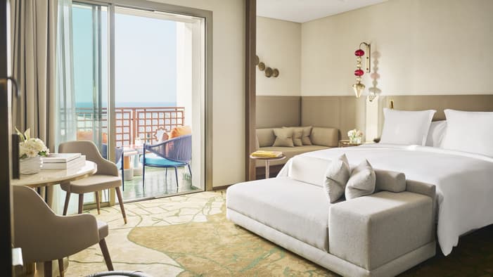 Wake up to a breathtaking panorama of the Atlantic Ocean. Reflecting the beauty and traditions of Morocco, this spacious guest room is comfortably furnished for work or relaxation.