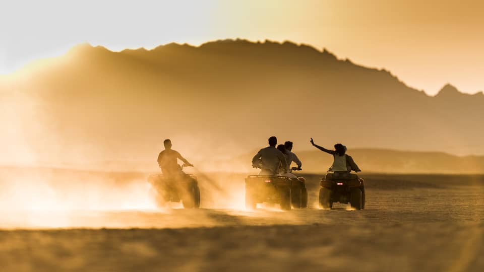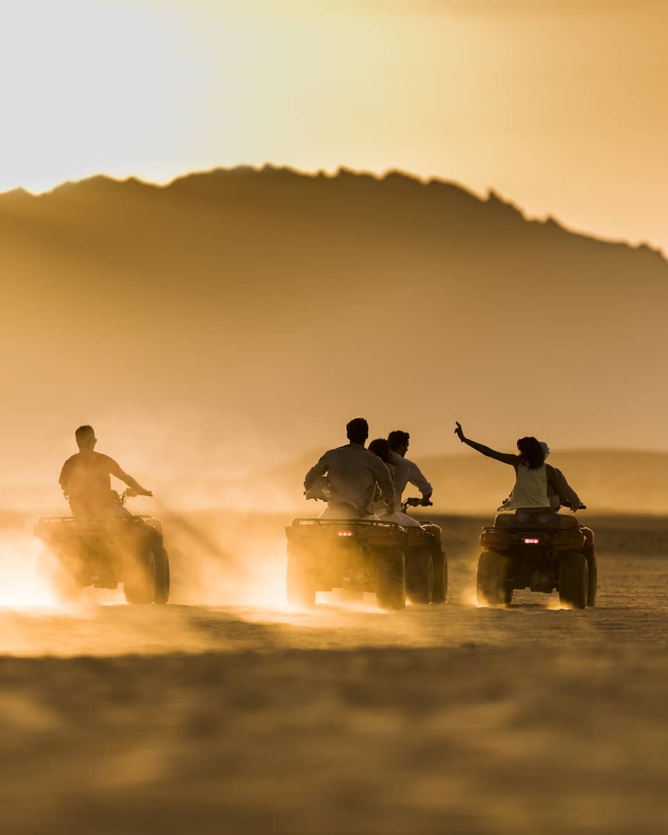 Experience Saudi Arabia’s captivating character as you take in the stunning scenery of Wadi Alsalaa with a backdrop of the Hijaz Mountains. Glide through the desert landscape on an eco-friendly electric quad bike. This fun, effortless tour lets you navigate the dunes with a modern twist. For younger adventurers, mini e-quads follow a designated trail, ensuring thrills and excitement. Let Four Seasons coordinate every detail of your expedition.3 / 4