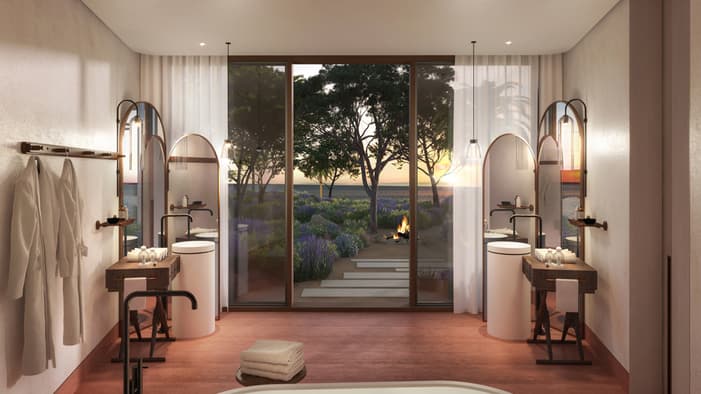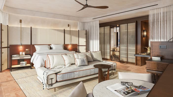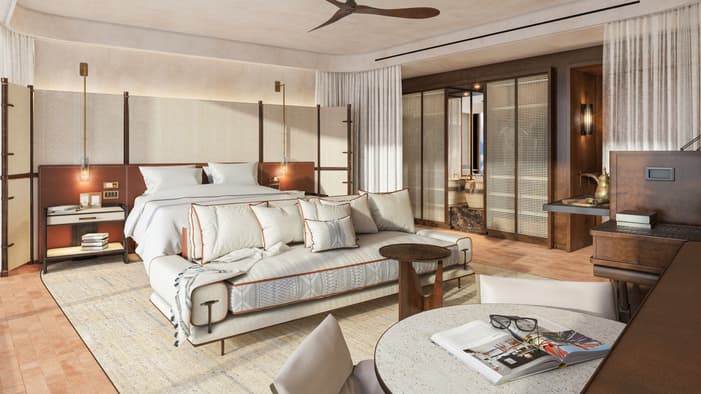 In Shura Island’s sanctuary of sand and sea, guest rooms and suites are set in clusters, resembling ancient desert trade caravans. The Hijazi camp experience continues with outdoor firepits and communal spaces. Sliding glass walls maximize your connection with nature, inviting you to walk outdoors barefoot and explore the sand dunes and beachfront. Warm, natural materials combine with rich, colourful textures and patterns, evoking the style of a chic desert safari camp.