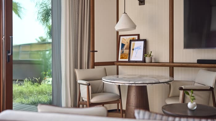 Designed for entertaining, our beachfront three-bedroom Presidential Suite offers a formal dining room for 10, full kitchen, private gym, a terrace with plunge pool and much more.