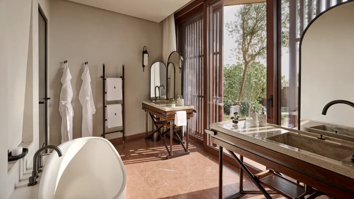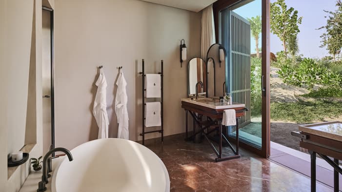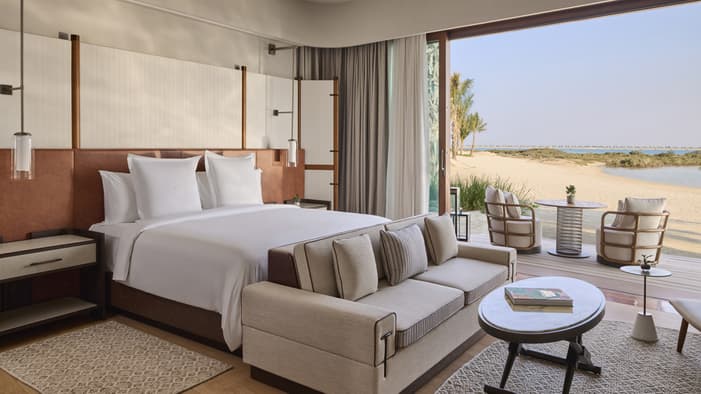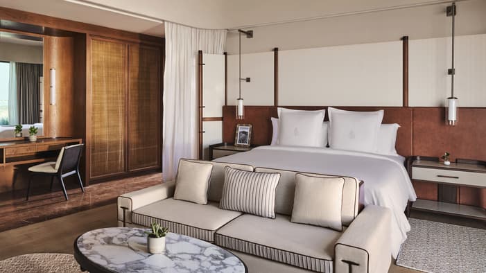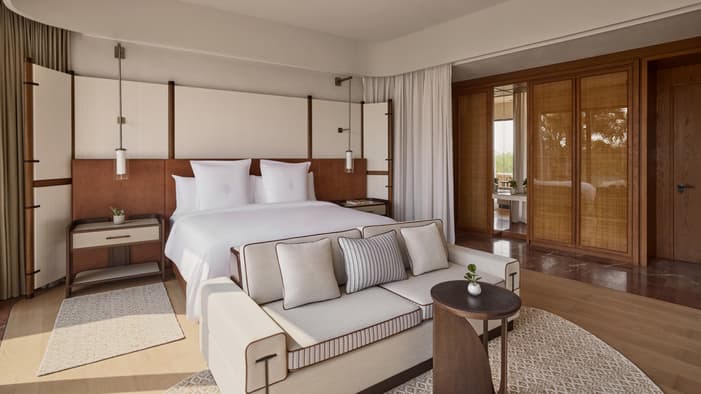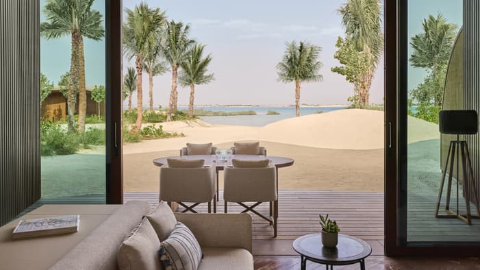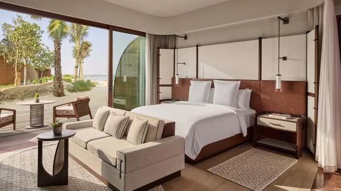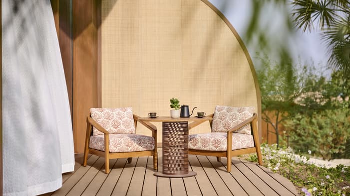 In Shura Island’s sanctuary of sand and sea, guest rooms and suites are set in clusters, resembling ancient desert trade caravans. The Hijazi camp experience continues with outdoor firepits and communal spaces. Sliding glass walls maximize your connection with nature, inviting you to walk outdoors barefoot and explore the sand dunes and beachfront. Warm, natural materials combine with rich, colourful textures and patterns, evoking the style of a chic desert safari camp.