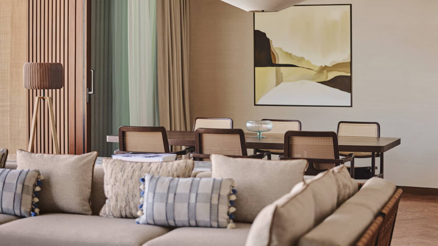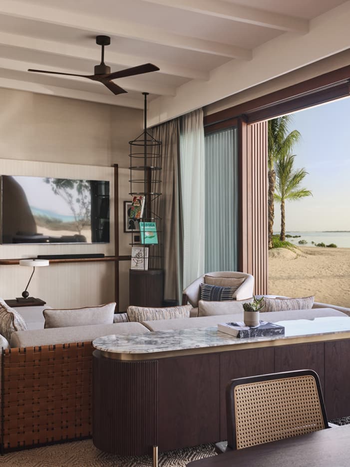 In this spacious one-bedroom beachfront suite, all you can see is the vast sky, the shimmering Red Sea and our endless stretch of golden sand. With sliding glass walls that open to the furnished terrace, this is indoor-outdoor living at its best. Available with two bedrooms.