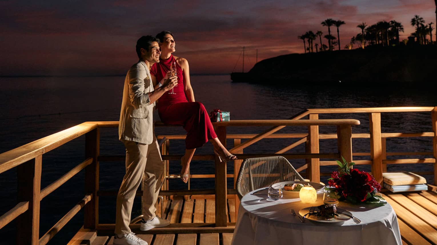 Let the Mediterranean breeze and starry skies set the scene for a romantic dining experience, where candlelight and live music turn the night into a celebration of your love.