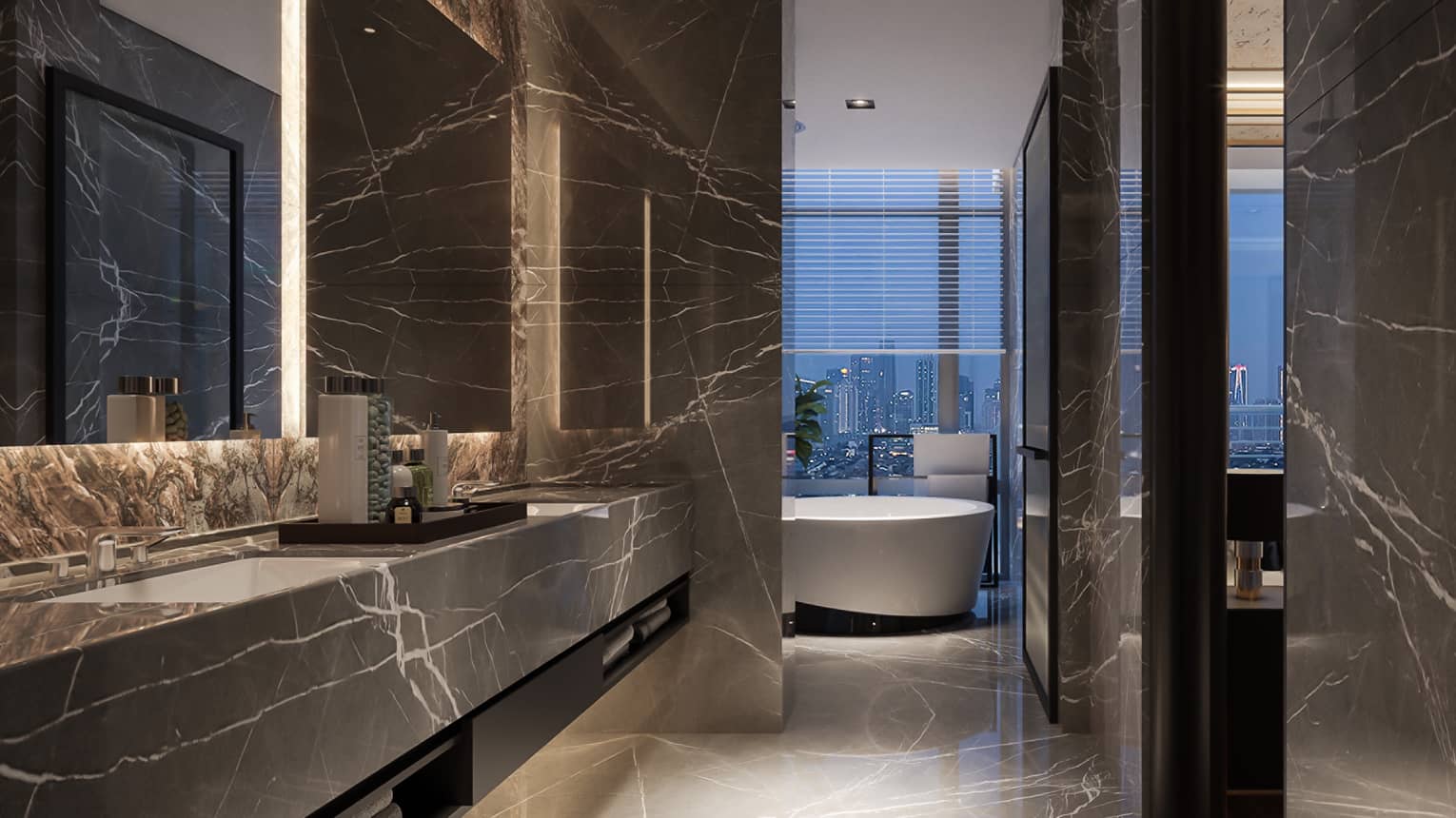 Luxurious BathroomsThoughtfully designed to create a serene, spa-like space in which to relax and refresh, stunning residence bathrooms come set in marble, with a signature Four Seasons soaking tub to sink into and unwind.