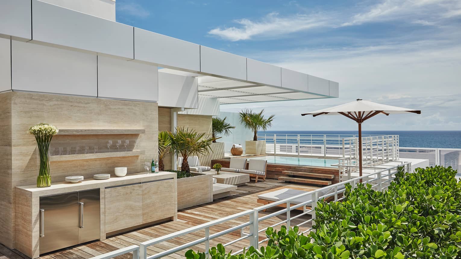 A space for entertainingWhether spending the afternoon by your private pool, or reminiscing with friends in the shady lounge space, penthouse terraces offer the ultimate reflection of the laid-back Surfside lifestyle.