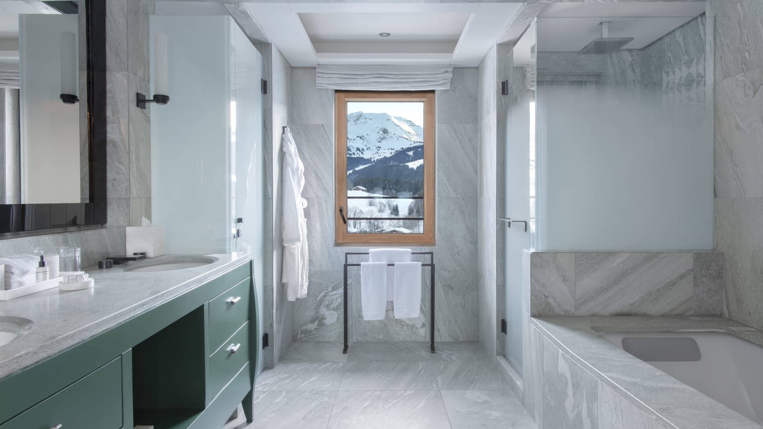 В этом люксе, выполненном в стиле шале, отделка темным деревом гармонично сочетается с современным дизайном. В люксе предусмотрено все для комфортного проживания: просторная гостиная с панорамным балконом для семейного отдыха и развлечений в компании друзей и глубокая ванна, где так приятно остаться наедине с собой и расслабиться после прогулки в горах.
