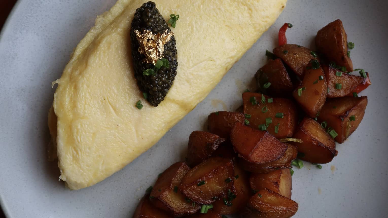 “LOADED” OMELETFluffy omelet filled with applewood-smoked bacon, aged cheddar and fresh chives, served with seasoned breakfast potatoes and your choice of toast.