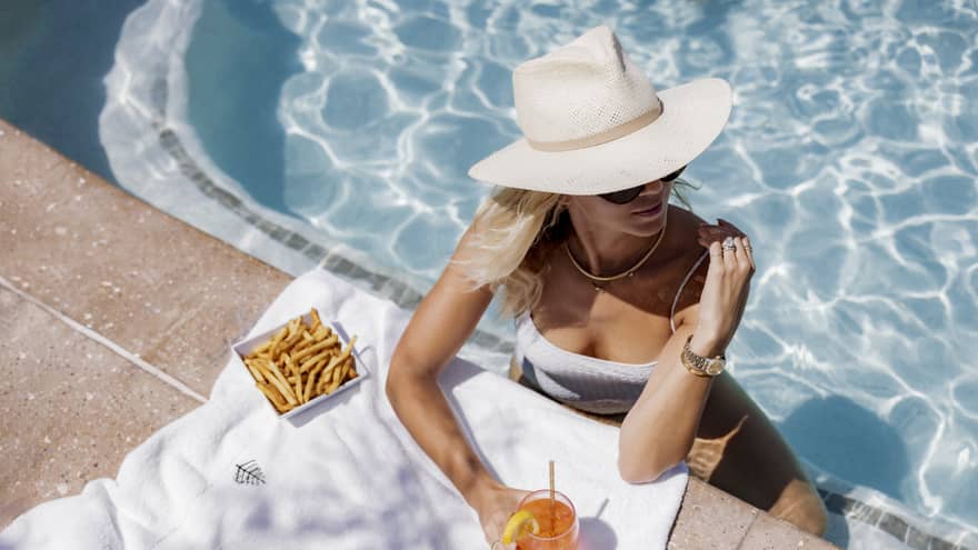 Settle in poolside at one of our shaded tables and snack on fresh ceviche, kale salads and juicy burgers – with an ice cream sandwich for dessert.