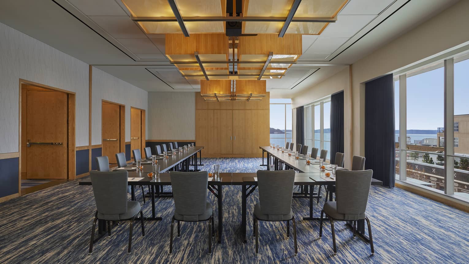 Gaze over the waters of Elliott Bay through a wall of floor-to-ceiling windows in this naturally lit space that draws inspiration from the Pacific Northwest’s bountiful natural beauty, ideal for mid-size meetings and receptions.