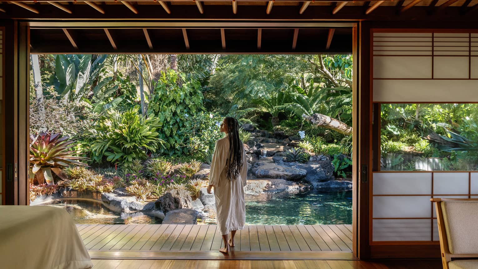 Experience serene luxury in comfort and elegance. Light-filled rooms look upon lush gardens, with your own personal lanai to enjoy a moment of quiet or a meal with a view.
