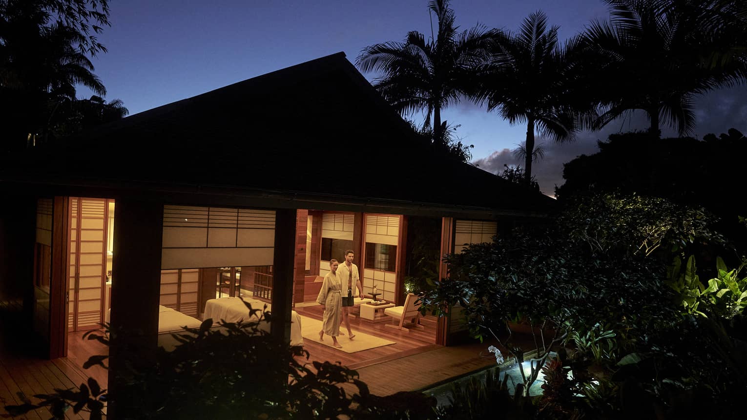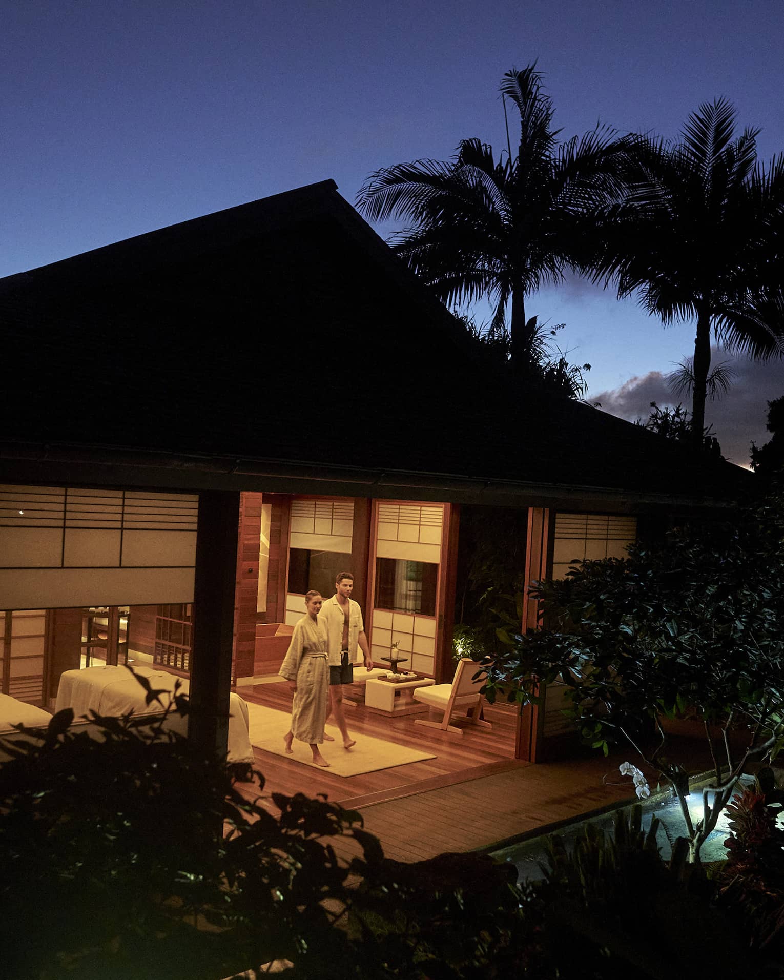 Create your own personal spa ritual (either alone or with your partner) exploring your private spa sanctuary under the stars – a shelter of calm set amongst the tropical gardens of Koele in a spacious teak hale. Amenities include an infrared sauna, steam shower, Ofuro bath, outdoor rain shower and soaking tub. This option is complete with gourmet refreshments and snacks.