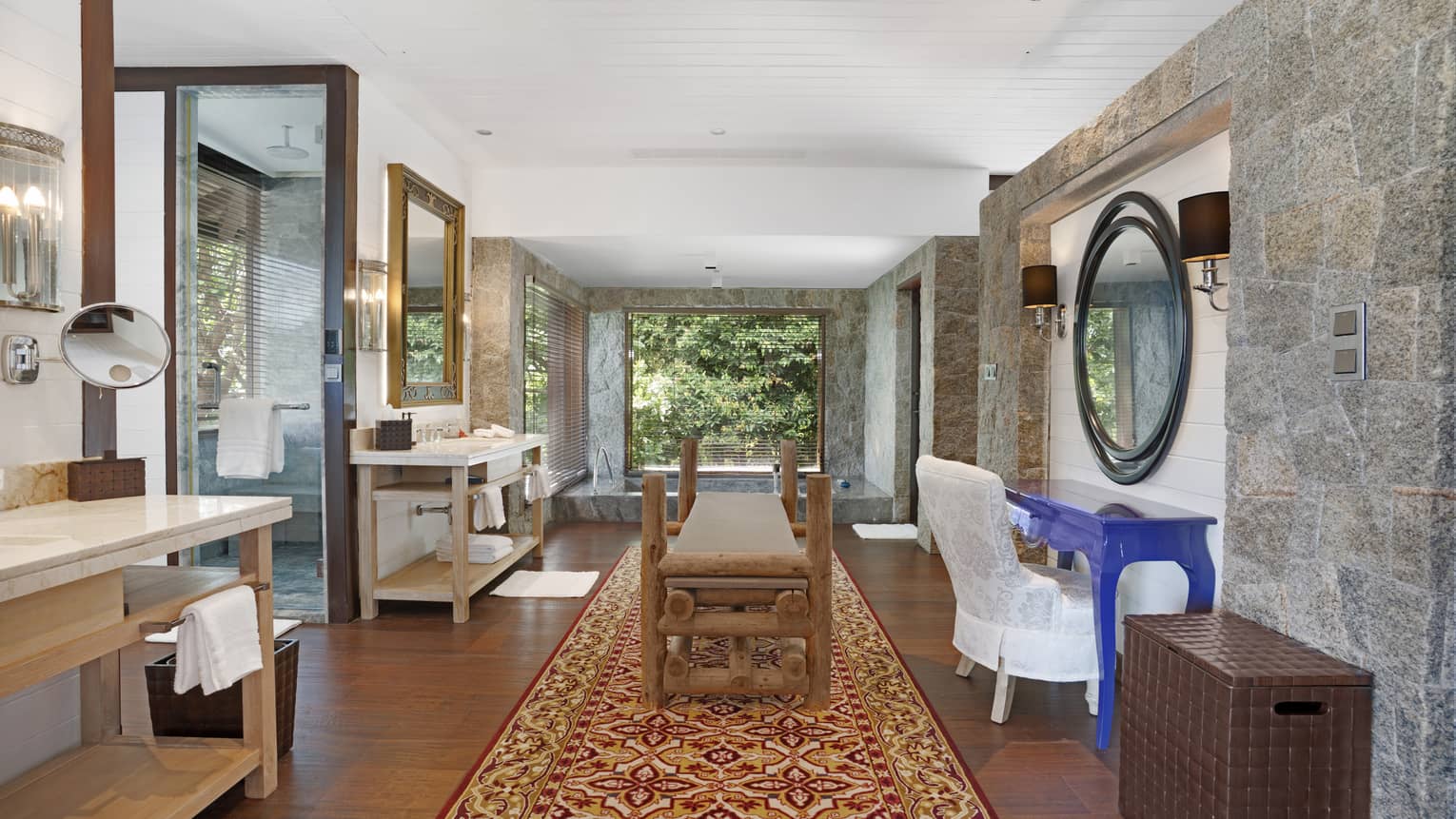 Seven full bathrooms, plus a powder room