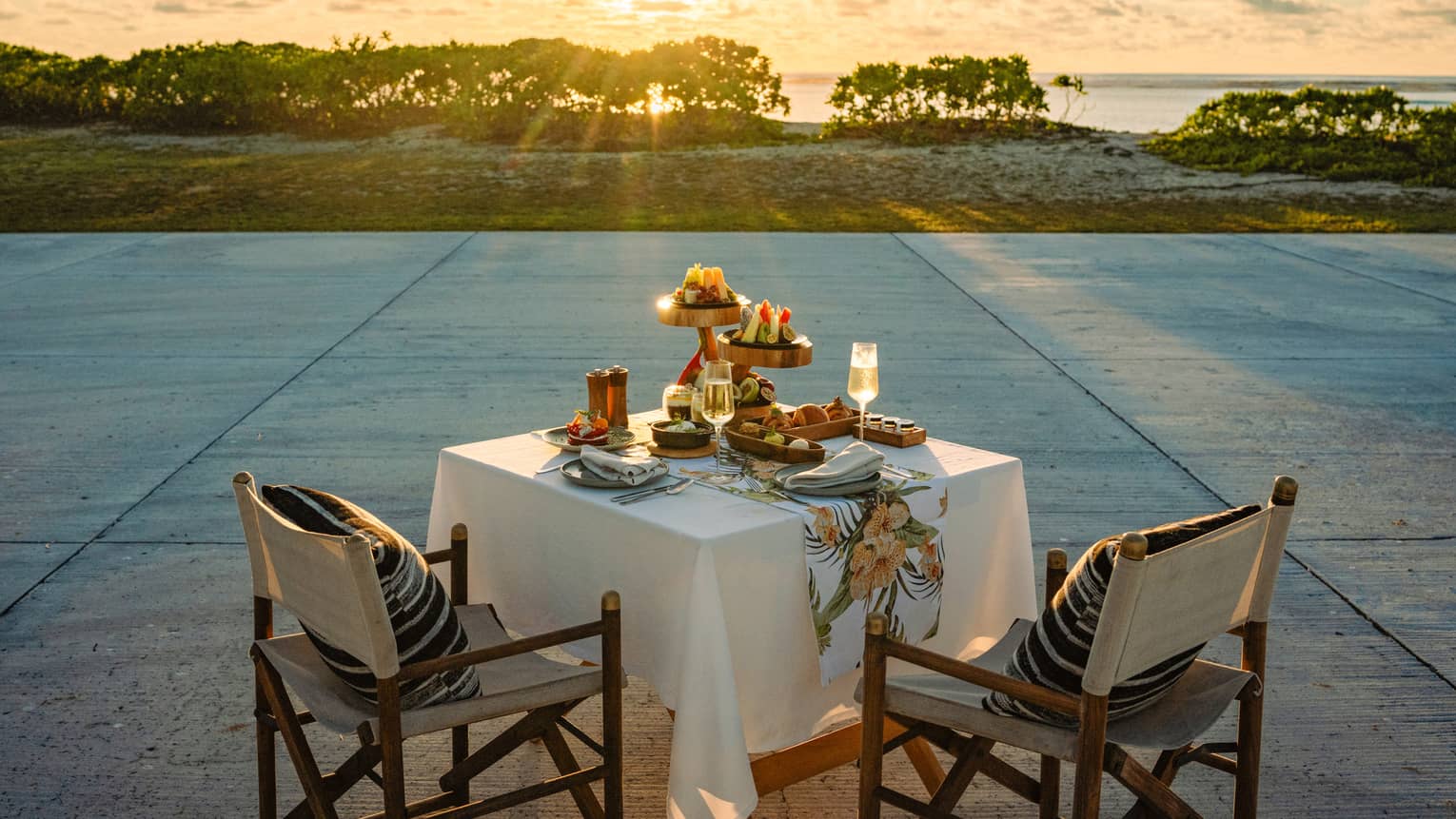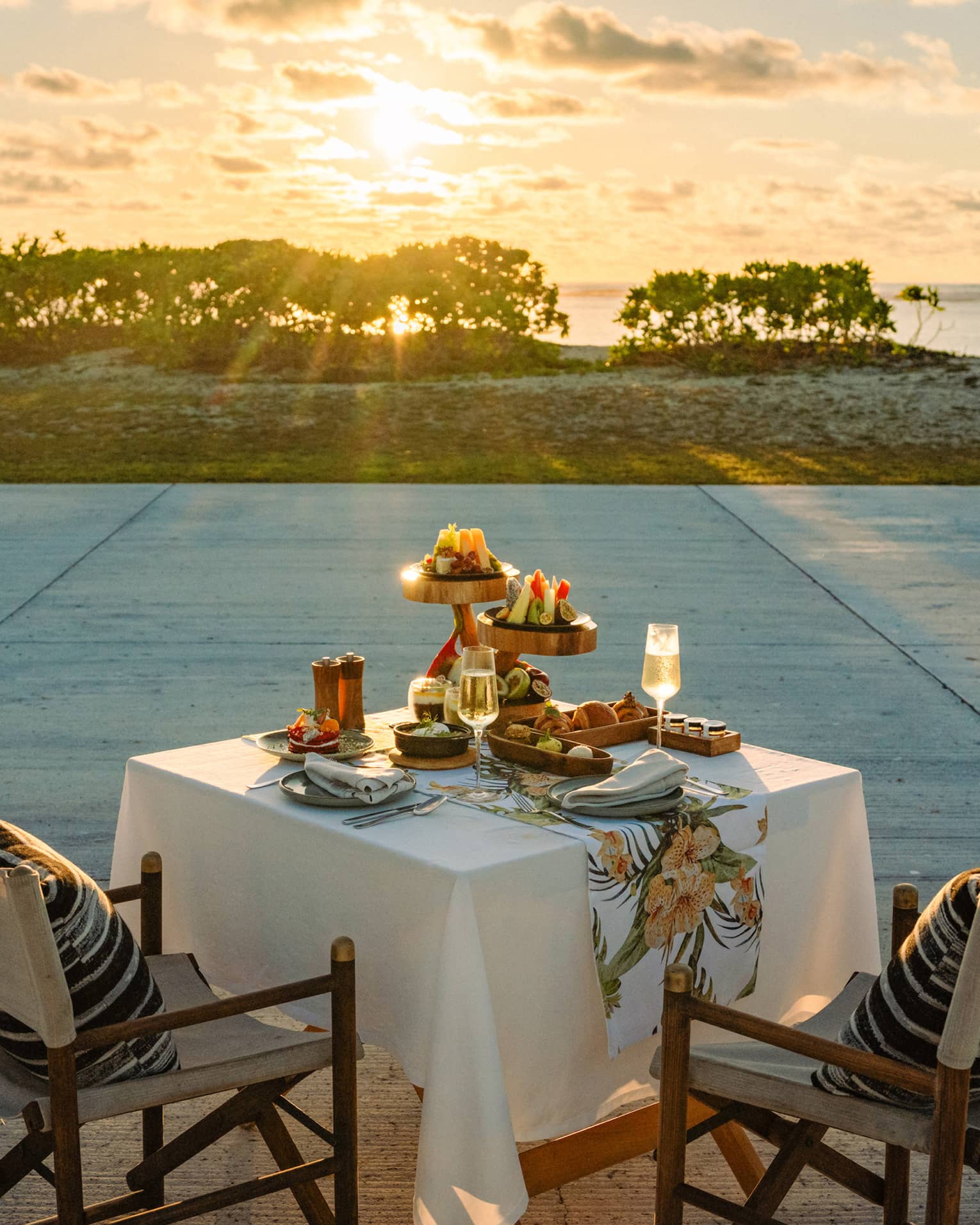 A daily exclusive, timed to catch the golden sunrise as it gilds the white sand and Indian Ocean beyond, with no one to disturb the calm. You'll have the entire runway to yourselves.