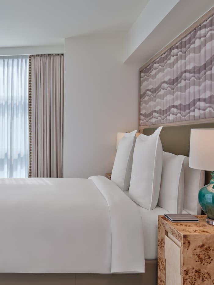 Located along our building’s modern curve, these uniquely shaped suites combine a cosy sitting area, generous workspace and a relaxing king bedroom.