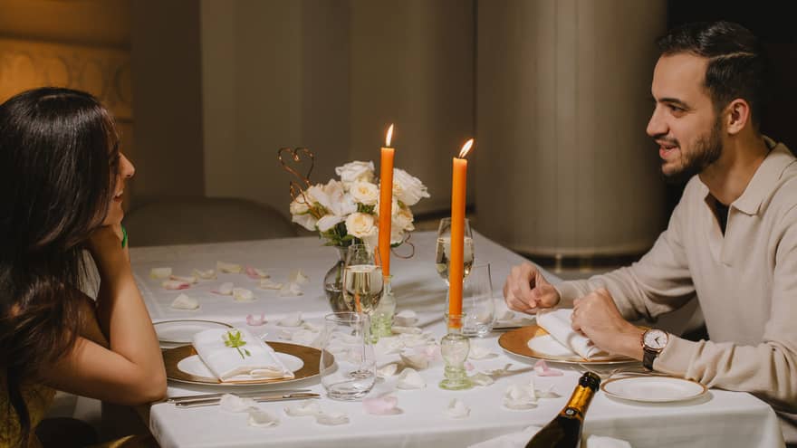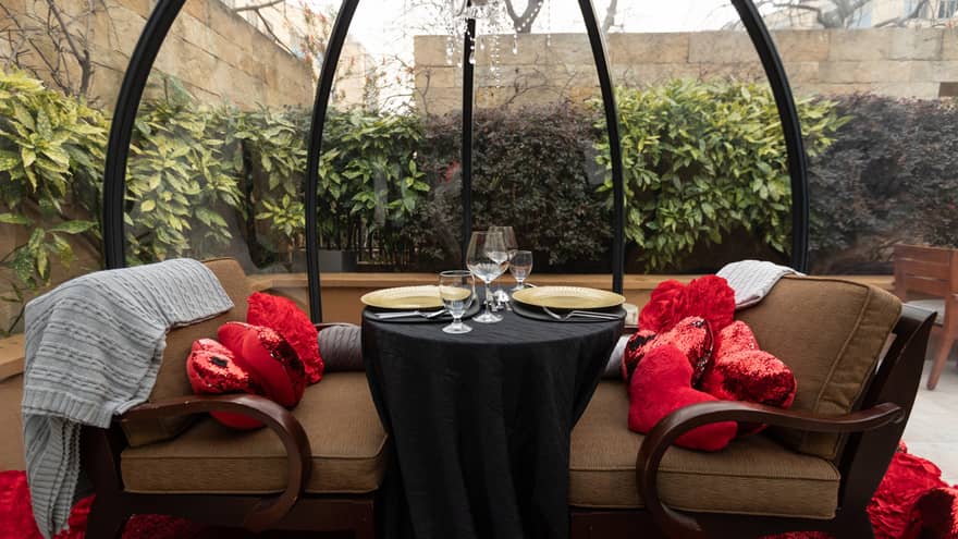 Valentine’s day at QuattroExperience an intimate Valentine’s dinner inside The Dome at Quattro, a cozy, translucent terrace hideaway glowing with soft light and romantic ambiance. Enjoy a luxurious five‑course menu, champagne welcome, roses, keepsake photo, bonbons,and live harp music, an unforgettable, elevated celebration under the stars.
