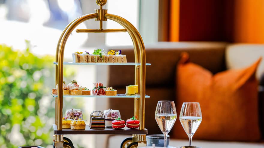SEASONAL AFTERNOON TEASaturdays & Sundays, 1:00 pm – 5:00 pmDelight in a refreshed menu with savoury treats like smoked salmon egg rolls, lobster rolls and tea sandwiches, plus sweet indulgences like strawberry jasmine macarons and tropical tartlets – now served from a stylish luggage cart–inspired trolley. Vegetarian options are available on request. Enhance your experience with a glass of Telmont Champagne for a touch of luxury. Perfect for enjoying with friends, family or on your own.