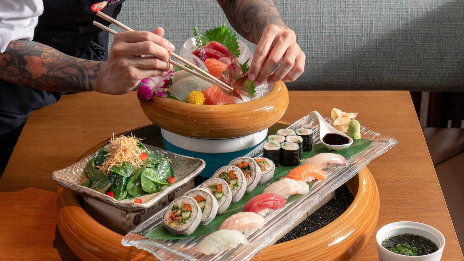 Discover the art of sushi in a private, hands-on experience led by Nobu's expert chefs. Craft sushi, cut rolls and hand rolls with fine ingredients, before savouring your creations on an elegant Nobu family-style platter, complemented by signature hot dishes prepared à la minute.