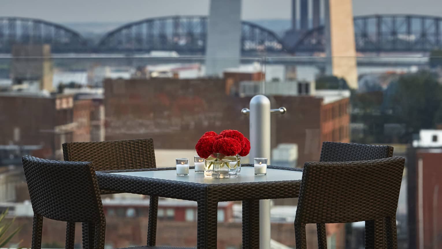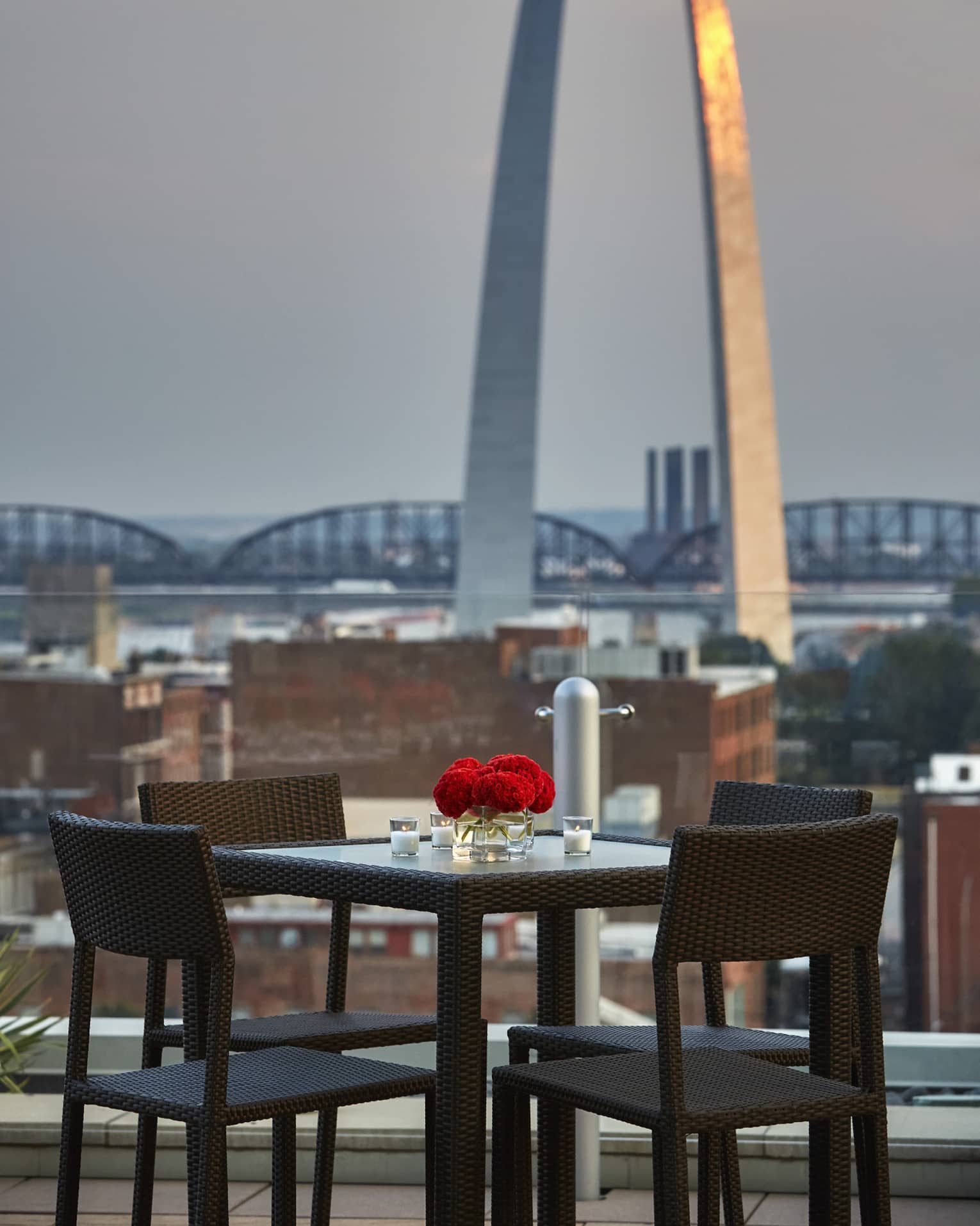 An exclusive, family-style rooftop dinner experience with panoramic views of the Gateway Arch. Enjoy a three-course meal cooked live over Missouri oak by our chef, with each dish artfully prepared and served tableside.