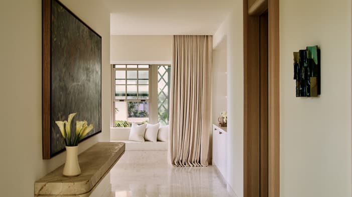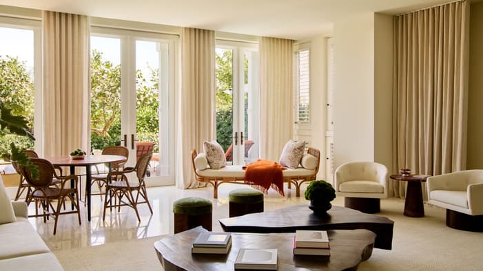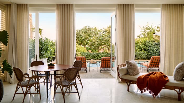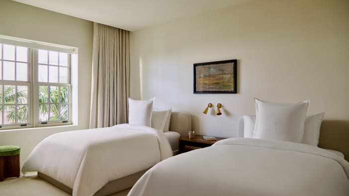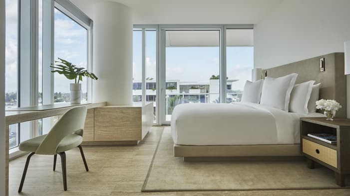 The Surf Club offers refined rooms and suites in Surfside, Florida, just minutes from Miami Beach, designed for calm, contemporary coastal living. Designer Joseph Dirand created the interiors across 77 guest rooms, four ocean bungalows and a collection of specialty suites. Select accommodations feature Atlantic views, while all use refined materials and thoughtful layouts to connect indoor living with the resort’s oceanfront setting.