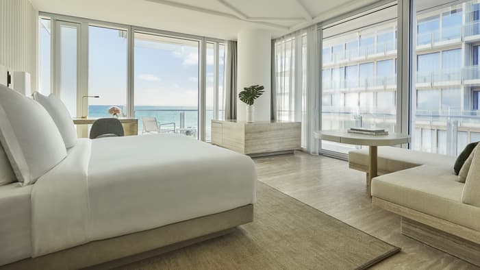 ake in the most stunning sights from our Ocean-View Corner Rooms. Wake up to a breathtaking panoramic vista of the shimmering Atlantic Ocean through a full wall of windows, and in the evenings, enjoy a glass of wine on the wraparound corner balcony that looks out over the city skyline.