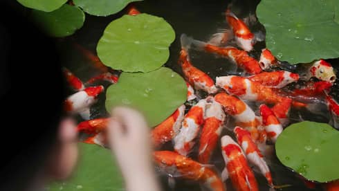 Amid the continuous chirping of birds and the gentle gurgling of water, children can interact with fish at close range, allowing them to coexist with nature. Fish food is available at the front desk.