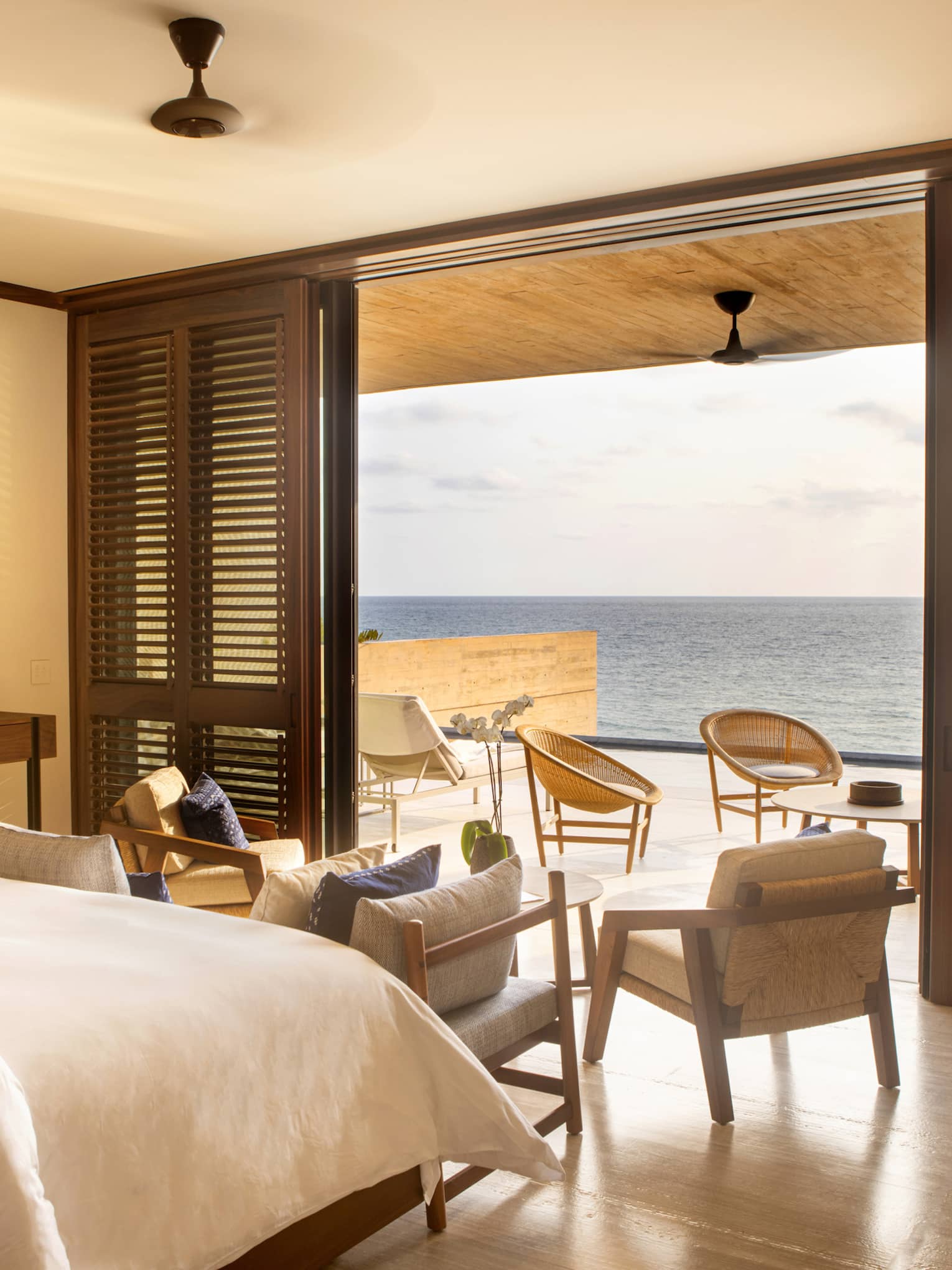 This two-bedroom suite above the shoreline offers ocean views, indoor-outdoor living and a private infinity pool. Share sunset dinners, unwind on secluded terraces and fall asleep to the rhythm of the sea.