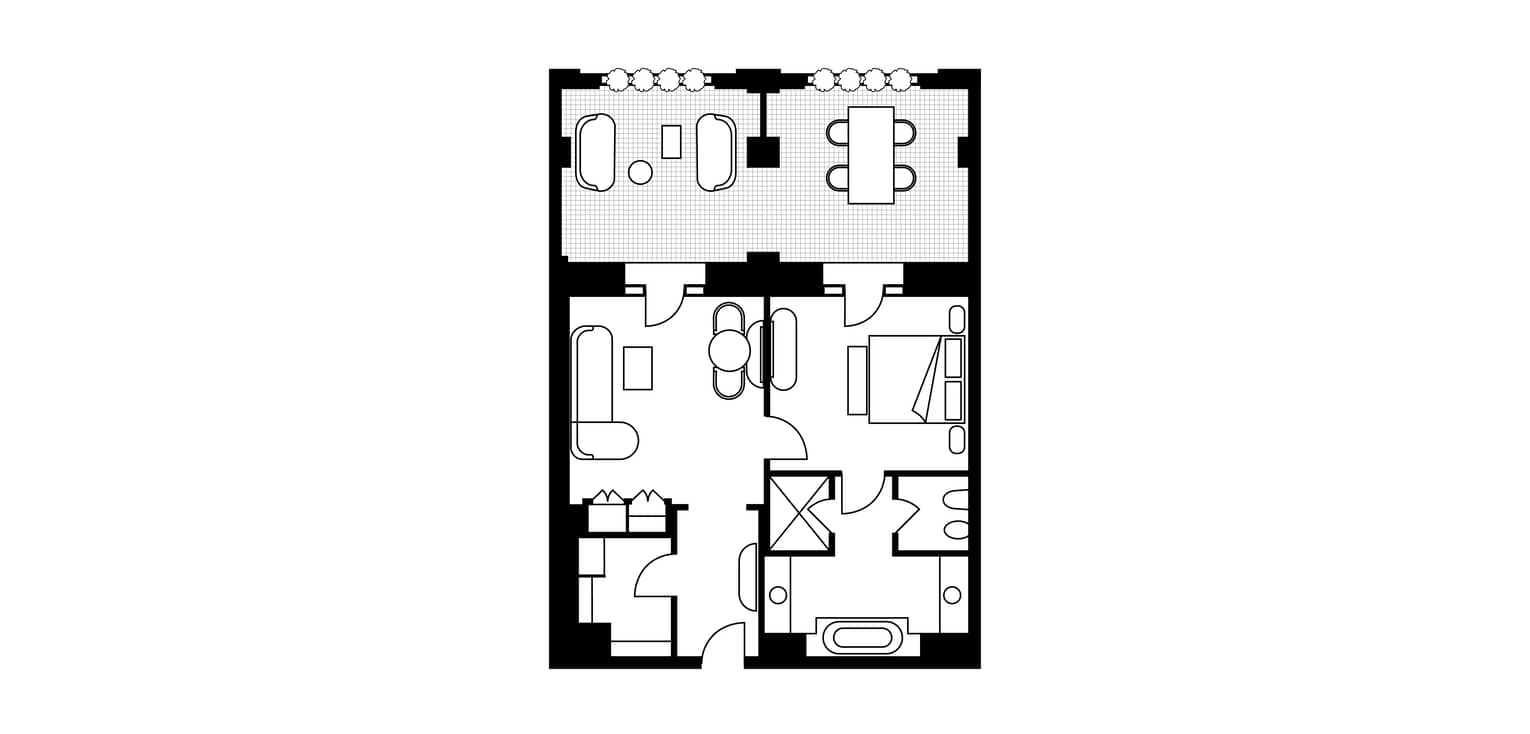 Entertain al fresco on your spectacular terrace overlooking the Ancient Theatre and the sea. With its generous indoor and outdoor living areas, and its private plunge pool or jetted tub, this one-bedroom suite is perfect for a small family.