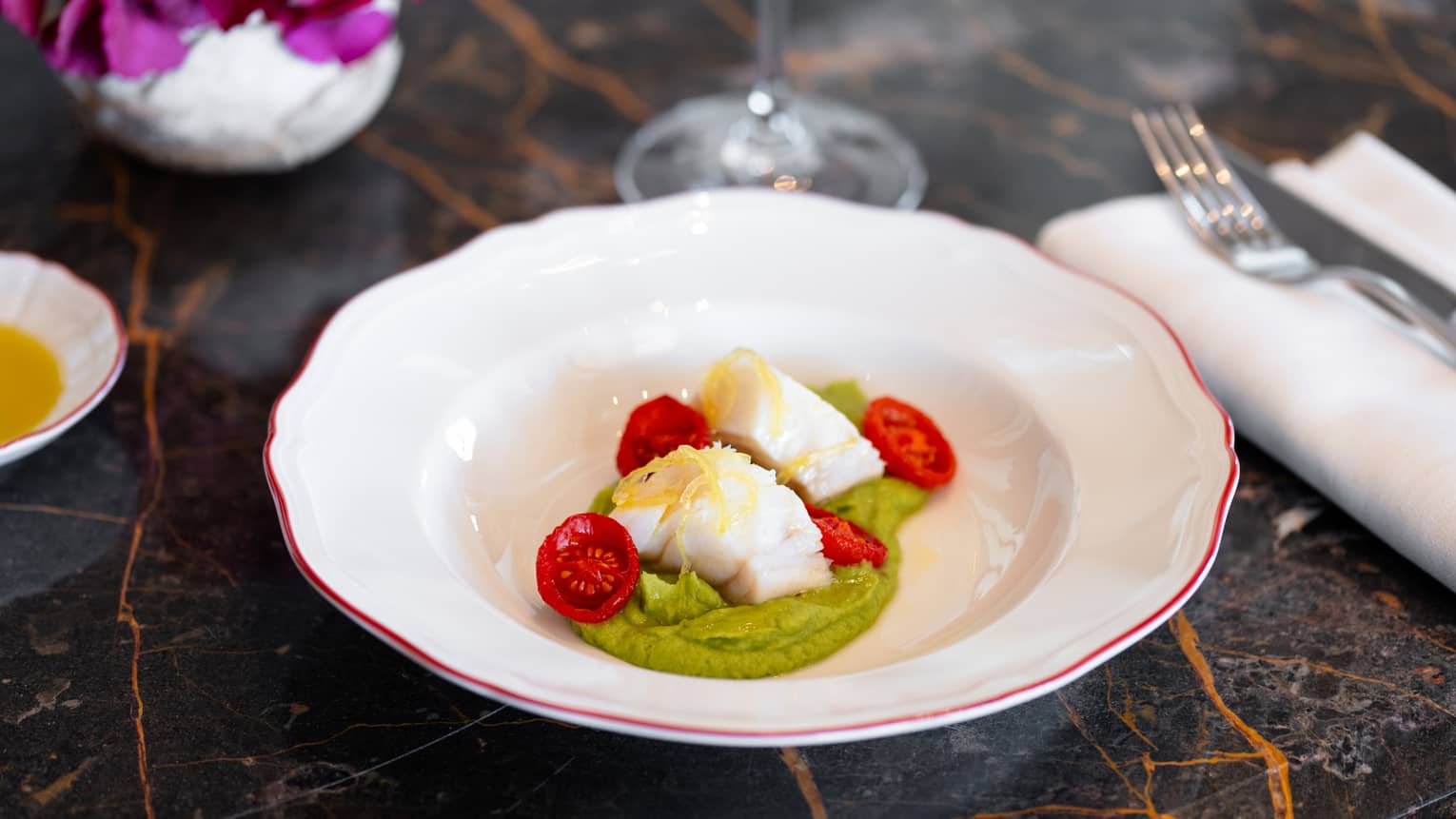 Steamed Cod FilletGreen Broccoli, Cherry Tomatoes, Marjoram