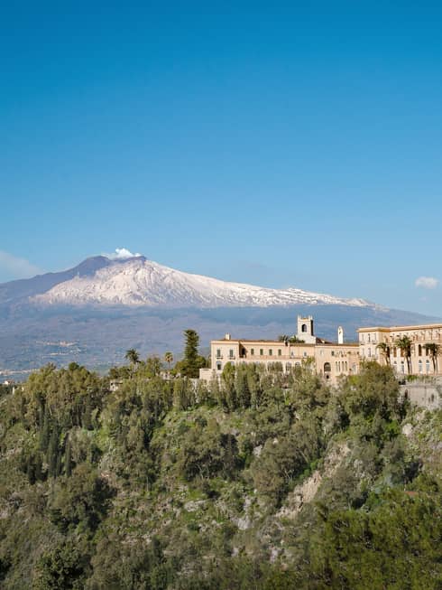 Witness the drama of Europe’s most active volcano from the comfort of your room. Select suites offer front-row seats to Mount Etna, snow-capped in winter and glowing in summer.