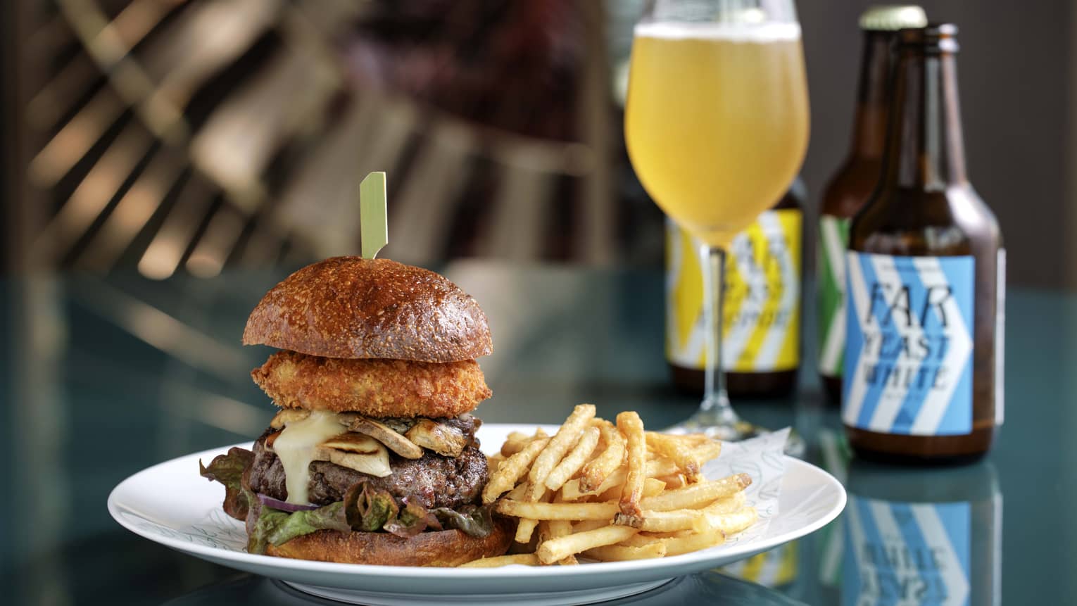 Enjoy a lineup of flame-grilled wagyu burgers on house-baked potato buns, served with golden fries. Toppings highlight seasonal accents – bacon-onion jam, porcini mushrooms and artisan cheeses crafted in Tokyo. Enhance your experience with a curated flight of Tokyo craft beer. Price starts at JPY 5,500.