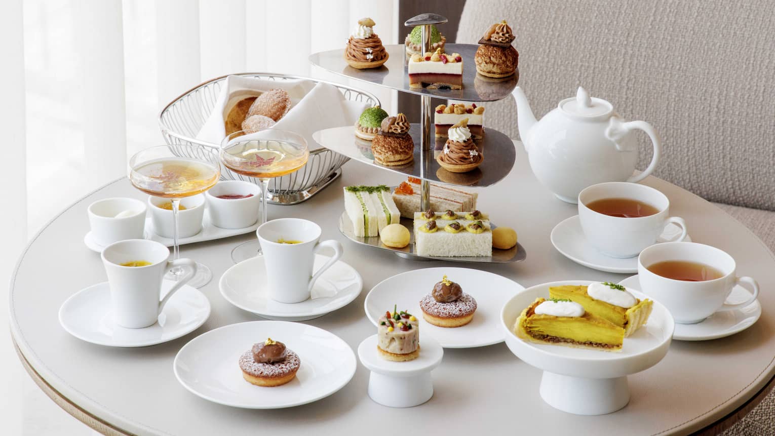 As autumn continues, chestnut takes the spotlight in a medley of seasonal sweets, lifted by hints of matcha, chocolate and cherry. Paired with French-inspired savouries like sweet potato tart and pumpkin soup, the tea stand becomes a vibrant showcase of the season. Weekdays: JPY 8,300; weekends and public holidays: JPY 9,500 per person.