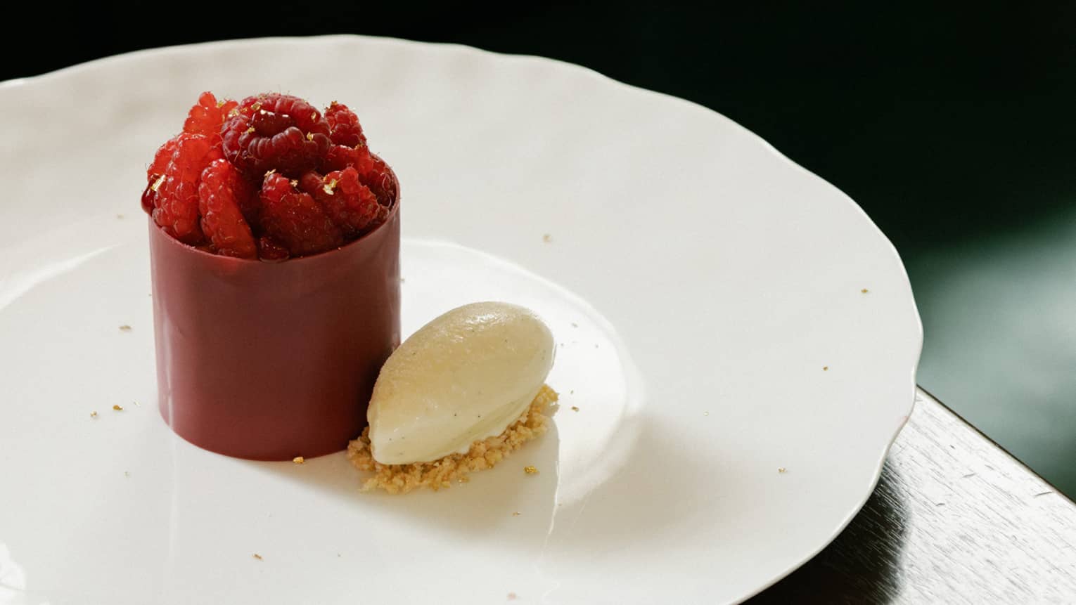 Framboisier au YuzuVanilla Sponge, Raspberry Crémeux, Ruby Chocolate Crumble