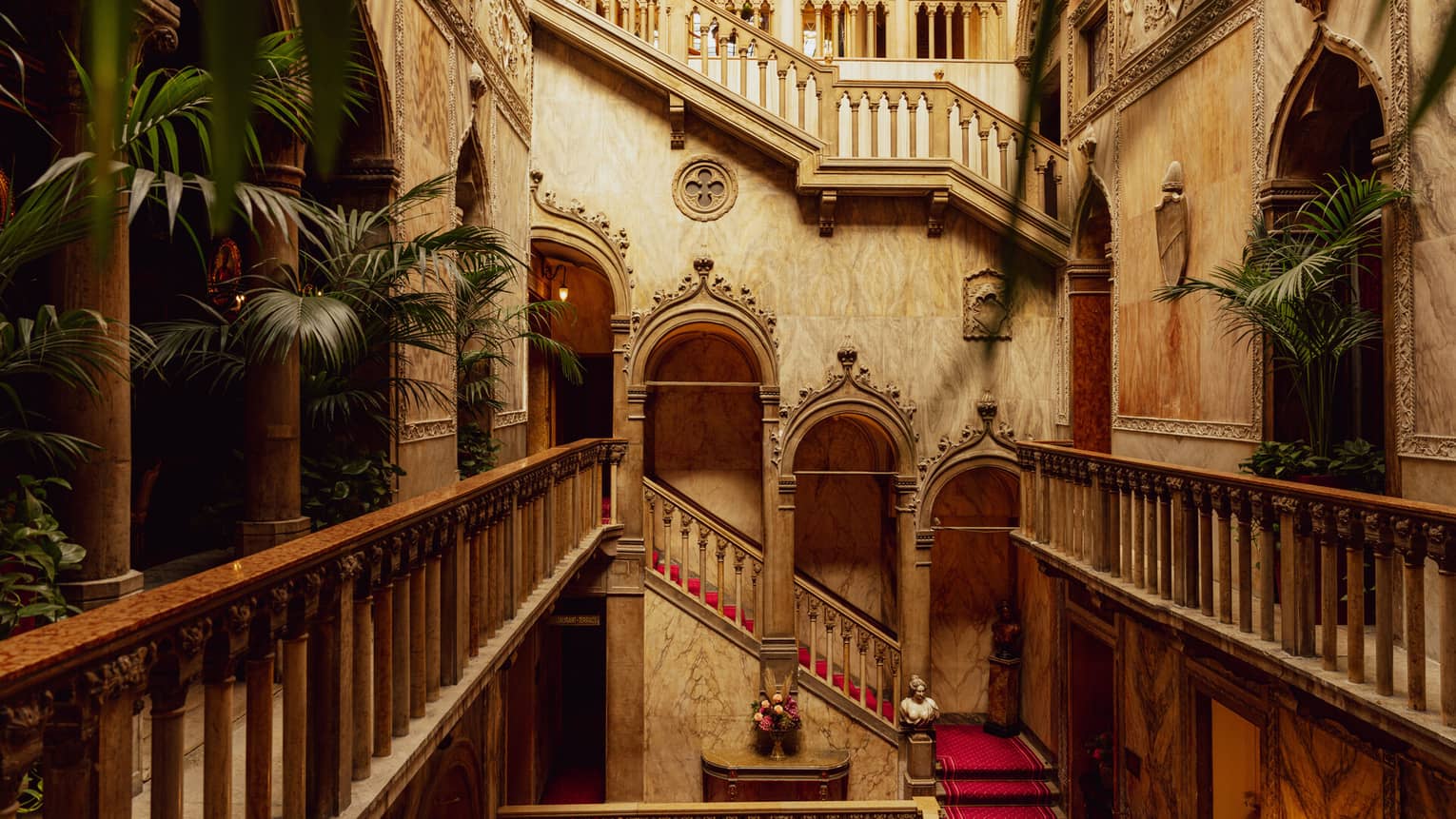 MAKE THE MOST MEMORABLE ENTRANCEArrive at the Danieli in the grandest of lobbies, set within the 15th-century Palazzo Dandolo. This four-storey atrium welcomes you with soaring pink marble columns, Murano glass chandeliers and the iconic golden staircase.