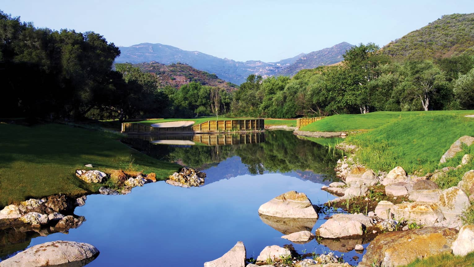 - Rustic hillsides and scenic canyons form a challenging course that spans a variety of elevations at the Sherwood Lake Club. Designed by Jack Nicklaus in 2006, the course is available to Four Seasons guests. Also in the area, the pristine courses at Malibu Golf Club and Tierra Rejada Golf Club cater to players of all skill levels. Moorpark Country Club, Lost Canyons Golf Club and Rustic Canyon offer stunning views across the California countryside.