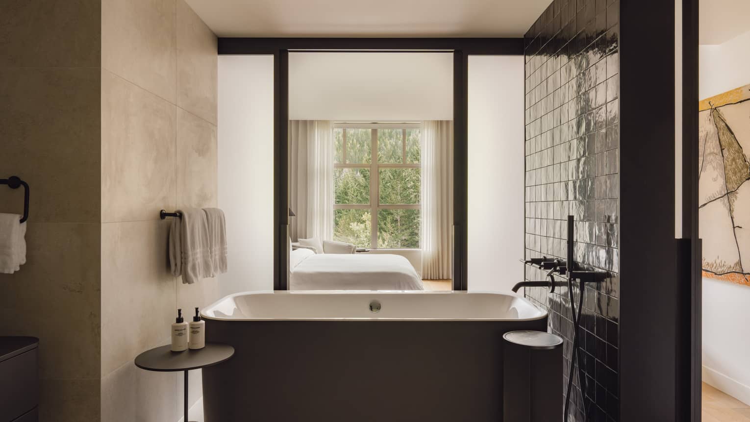 The Sanctuary Four-Bedroom Residence is ideal for groups of friends and families. Two bathrooms feature indulgent soaking tubs, while expansive living spaces – including a welcoming den and a fully equipped kitchen with a dining area – invite connection, relaxation and celebration. Step onto your private furnished terrace to take in sweeping views of the Coast Mountains, where every moment is framed by the natural beauty of Whistler.