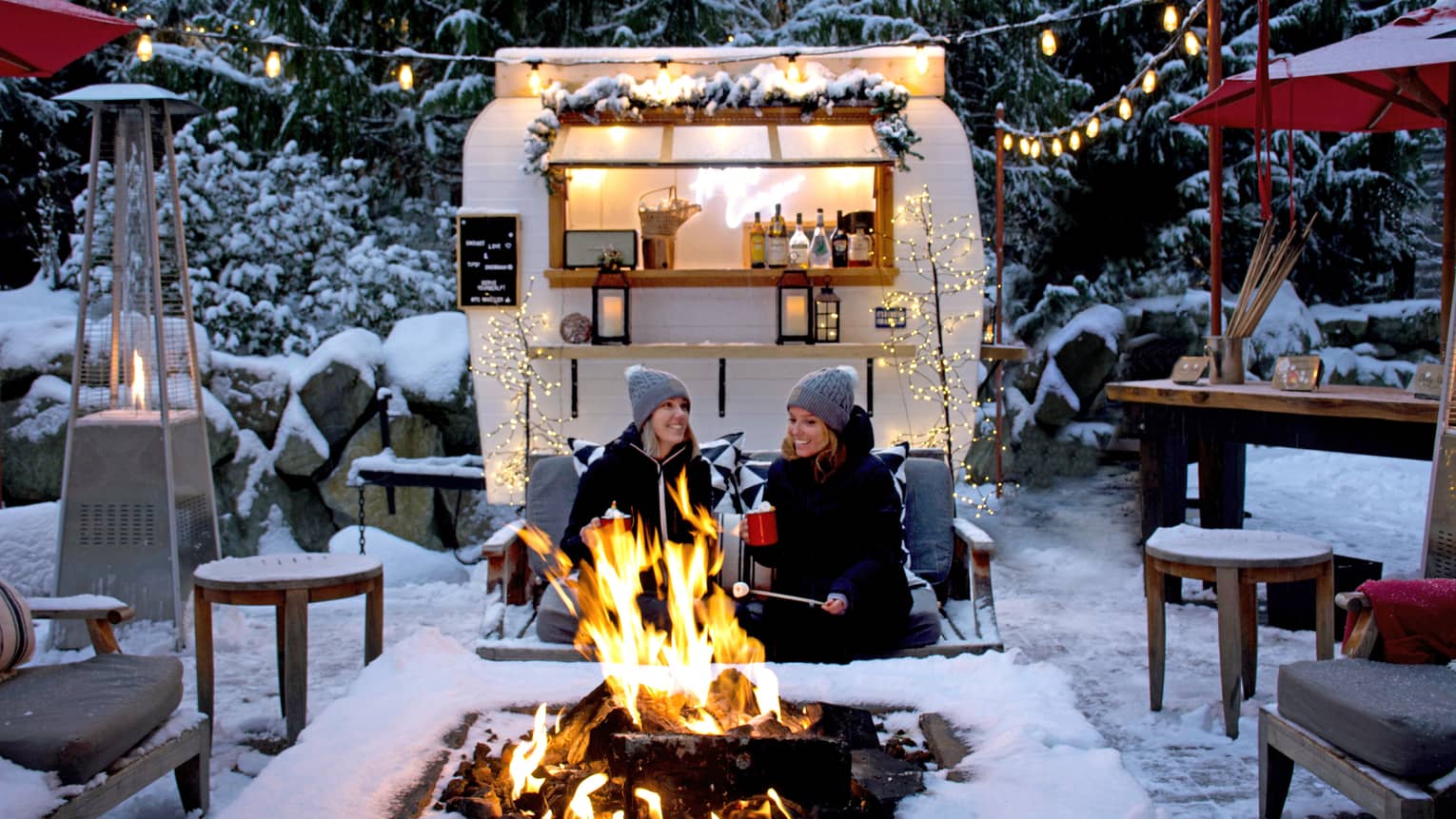 Don’t miss s’mores and hot chocolate by the vintage camper — an après-ski must.