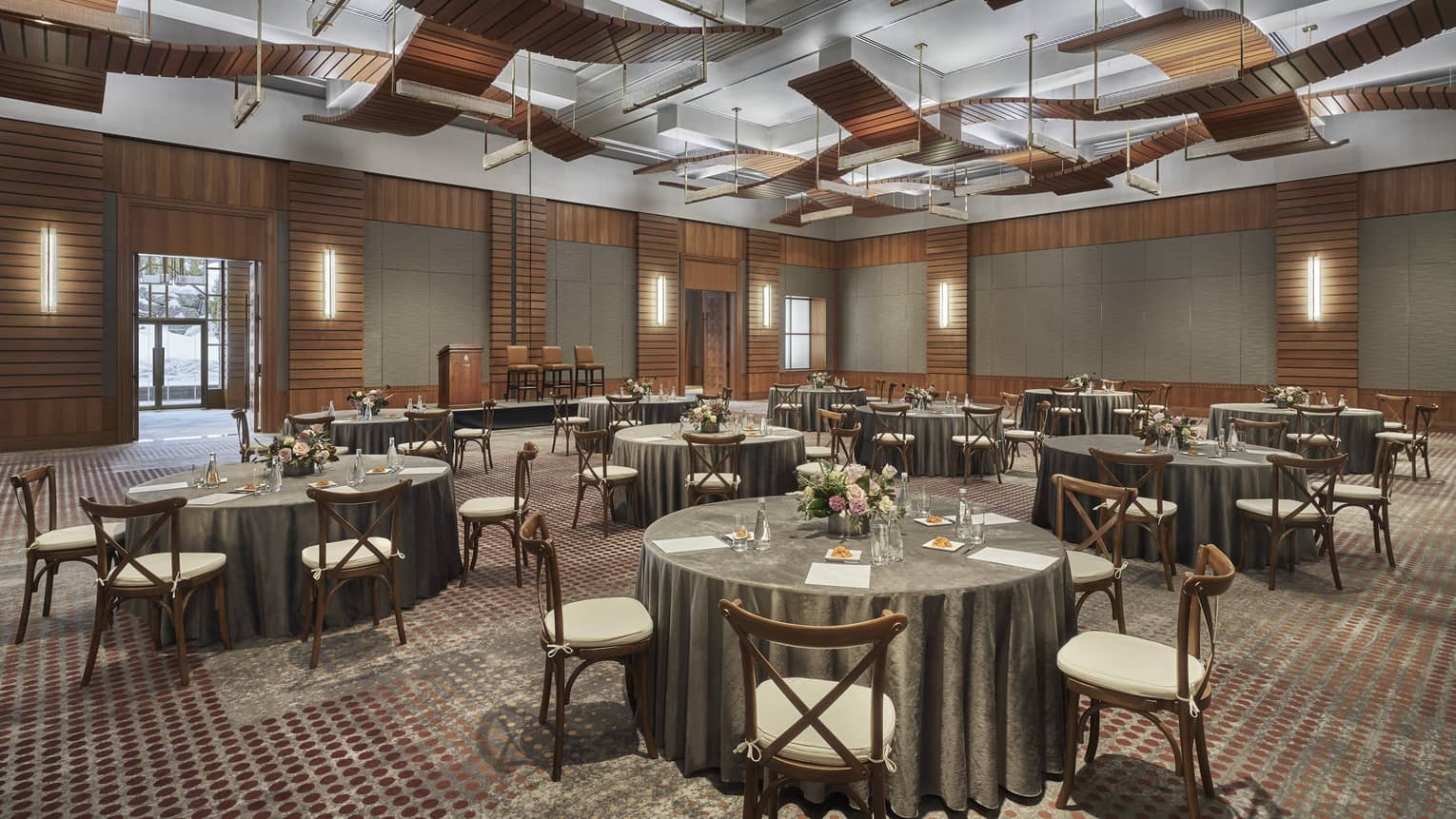 Harmony BallroomOpen, expansive, elegant and ideal for weddings, our ballroom accommodates up to 250 guests at round tables. An adjacent terrace allows for indoor-outdoor events.