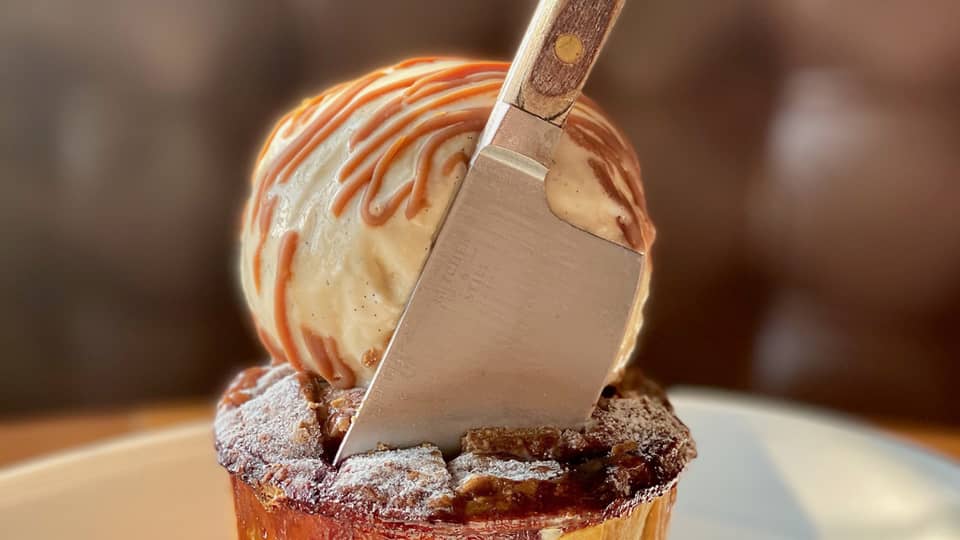 以匠心创造,从美味出发,因情怀动人。这道四季美味珍品 — 樱桃派配冰淇淋由我们的行政西点总厨 精心打造,值得您与挚爱之人一起细品。在 Butcher & Still 餐厅内推出的这款甜点以樱桃派为主角,搭配一大勺自制香草冰淇淋,再浇上些许浓郁香醇的焦糖酱,令人难以抗拒。轻轻切开,就能看到这道经典美式甜点中所用的两种酸甜樱桃。4 / 4