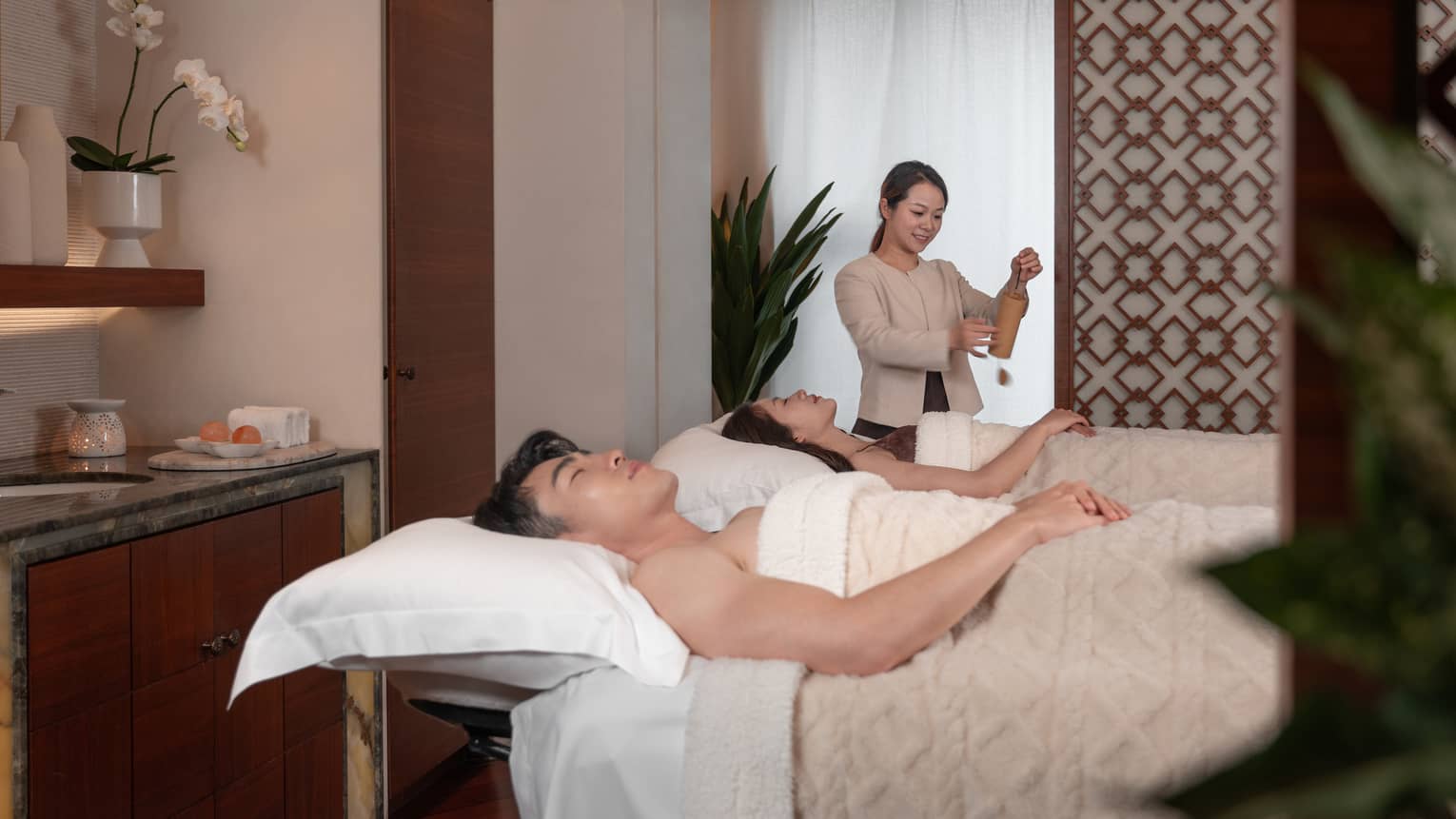 自然采光充沛的室内游泳池,毗邻舒缓身心的按摩池,周边的落地大窗为宾客提供了宽广的视野景域,城市景观尽收眼底。