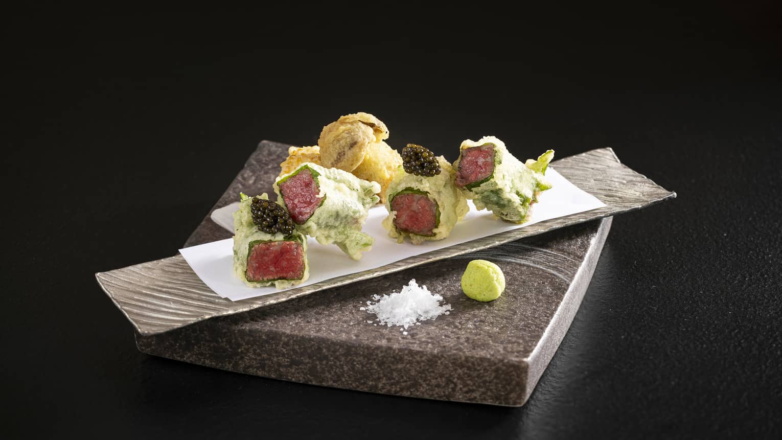 雪龙牛肉A5级天妇罗,鱼子酱