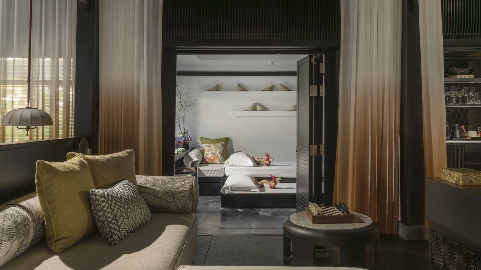 晨间,在大海的声音与美景中醒来,阳光于床帘间跃动。于私人露台上放眼眺望闪烁着诱人光芒的海滩。