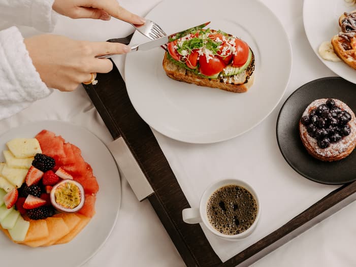 洛杉矶比弗利山四季酒店的客房送餐服务是一项方便客人在客房或套房舒适、便利的环境中享用精致美食的餐饮体验。送餐服务日夜供应丰盛美食,无论对正在适应时差的旅客、即兴召开的会议还是安静而私密的用餐而言,均可谓最理想的选择。